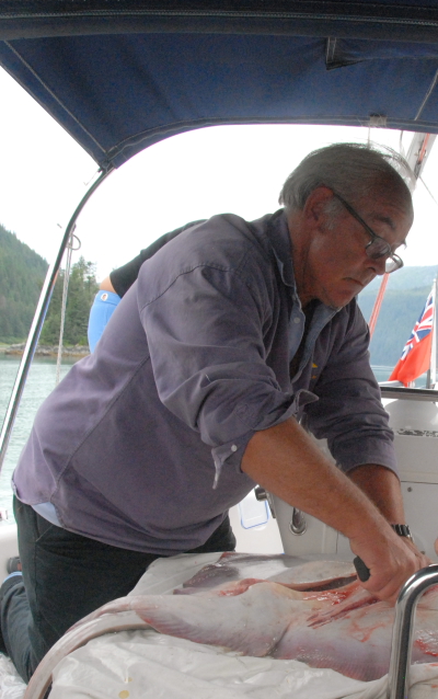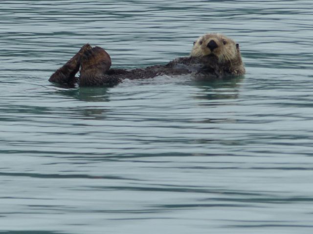 The following few days were spent in the wilderness, Dundas Bay off the Icy Strait. Very few cruising boats visit this area and during this time we seldom saw anyone. Horsefly Bay was nearby and the pesky critters decided to welcome us to the bay, an absolute nuisance who appeared when the wind died down. They can bite through clothes and we resembled crazy people swatting them with anything we had to hand. We came out the champions although for days we were hoovering up dead flies. David hooked a 8 kg Skate early one morning and we dined off this succulent fish for several days. The number of Sea Otters increased and our crab catching equalled one by the end of the three weeks. Sea otters adore crabs and the local fishermen detest them but as they are protected, nothing can be done about it. We all fell in love with these mammals with their cute inquisitive faces, carrying their pup on their tummies and many a time we saw rafts of Otters passing the boat, watching us with what looked like expressions of amusement. We were privileged to witness a pair of Otters mating which is a lengthy affair with the female fighting to stay afloat. The trusty Humpback Whales showed their moves for our guests and as we travelled towards Glacier Bay, this was a regular sight. David and Debbie serviced the windlass, the first time in several years….shame on us!