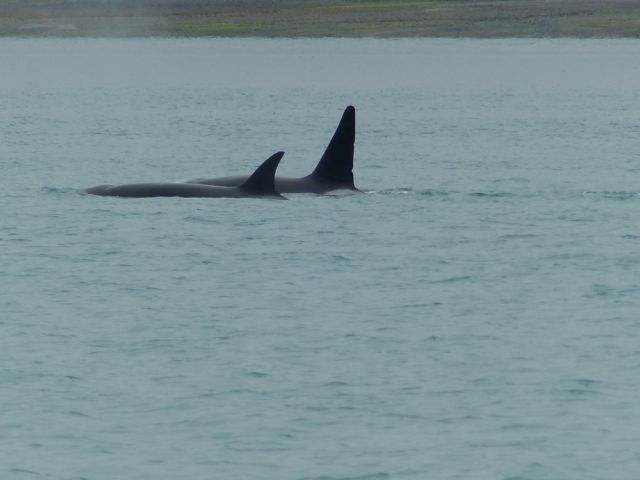 Blue Moose Cove was to be a highlight to our trip as we saw a pod of Orcas hunting a poor little Harbour Porpoise with Sea Otters keeping their distance with a watchful eye. The Orcas were fascinating to watch as they worked together driving the porpoise closer and closer to the shore. The Porpoise did get away and the Orcas got bored, seeking more successful hunting elsewhere. We eventually anchored in a “quiet zone” where the generator was not to be used between 10pm and 6am. This also meant any further exploration in the cove had to be by kayak and rowing the dinghy, no engines of any kind were allowed beyond our anchoring spot. Wendy got into the Tinker Tramp and Peter trailed out the painter until Wendy was adrift without oars. Thank goodness there wasn’t any current, we got her back to the boat and loaded up both vessels and took off to explore. Nothing apart from a fleeting glimpse of a deer and a seal, so back to the boat for Happy Hour and supper.