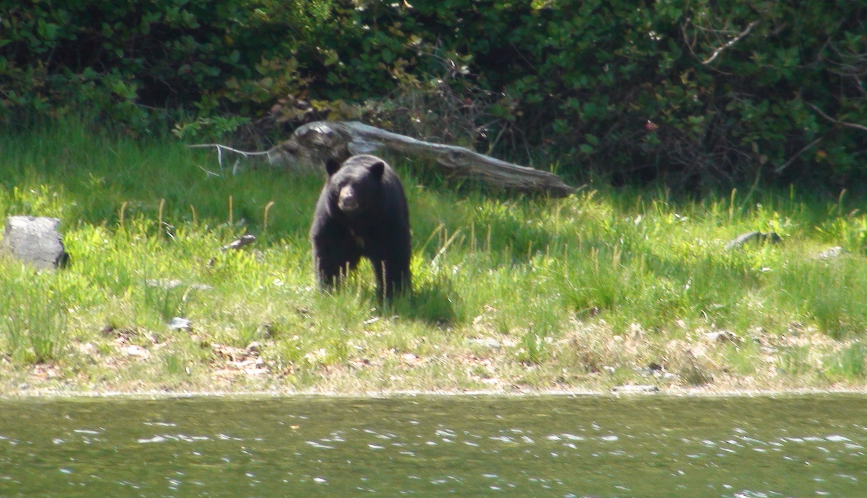 Fuelled with bacon sandwiches and freshly brewed coffee, we traversed narrows, straits and small islands until we reached the west of Clayoquot Sound…..West Whitepine Cove. Debbie was on the bow rock spotting whilst Stephen guided Amelie through the shallows into a wondrous cove. As the tide dropped, more rocks exposed themselves and the Eel grass wafted on the surface of the water. The books told us this is bear country and we were not disappointed. A huge male Black bear snaffled juicy grass shoots on the southern shore, meandering through shoulder high grass. Every now and then he would raise his enormous head, sniff the air and then go back to eating. The following day we spent ages watching him, sometimes turfing over rocks for food. Along the eastern shore a smaller, cinnamon coloured female bear was doing something similar. She was a little more nervous and cantered off into the woods when Stephen took the RIB closer to get photographs. She watched him from the safety of the forest. Later she came out, eating voraciously and then sneezed loudly, echoing around the cove. Eagles were fishing with seals gliding along slowly and Harlequin ducks chasing one another. Towards sunset, we heard wolves howling in the wooded area of the cove but no sign of them as yet. Stephen caught two 1 kg crabs in the trap and they fed us for several meals. Stephen enjoys being a hunter/gatherer, he also dresses the crab beautifully but it’s down to Debbie to clean the galley afterwards from floor to ceiling!