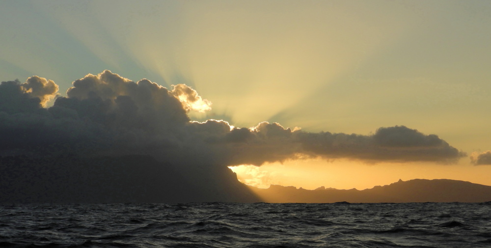 We experienced a lot of low lying cloud and rain whilst we were in the bay, although it was stifling hot. During sunny breaks we would zoom over to the shallow coral areas by the pass and snorkel, primarily for Stephen to try out his birthday present, an underwater compact camera. The visibility wasn’t perfect but each coral had a huge number of fish, sponges and anemones. The odd Tahitian Stingray glided past and typically a Black tipped reef shark, came out of the gloom patrolling his “hood”.
