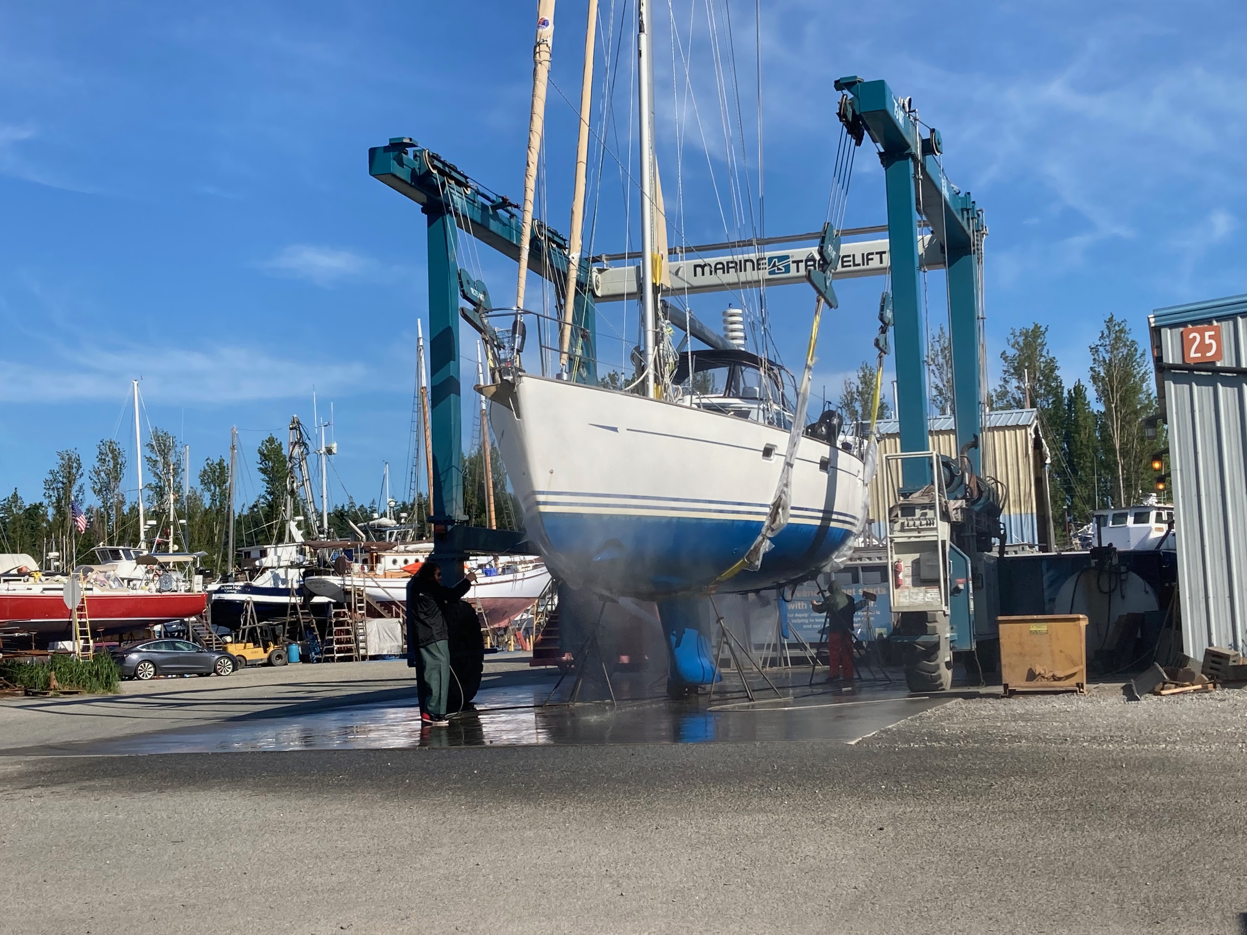 What a feeling! It was like reaching home. The welcome was phenomenal and we feel very comfortable here with lots of friends and help. Hugs from Kelsey in the marina office, cuddle from the delectable Bertram on the travel lift, smiles from Ginger at PTSW co-op and catching up with Odin and Joe from the docks together with waves from familiar people around the vast boatyard and marina.