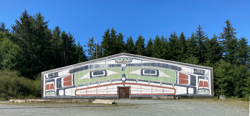 El Mundo and Amelie left sleeping Far North and continued our adventures north, catching a favourable current and minimal wind to Alert Bay, 37nm away. As we approached aband of fog hovered across the strait, making visibility tricky and naturally there were logs and kelp everywhere. After anchoring, we aided the island’s economy with a huge shopping trip and then ventured across the island to visit the tallest memorial pole and “Big House”. The building is used for Potlatches, traditional dancing and ceremonies. Outside is a huge playing field, primarily for the children but on Fathers’ Day in June, the community get together for a celebratory sports day. Alert Bay, as written about in our 2022 summer blog, is a strong First Nation community, a well organised and busy village. The people gave us a huge welcome, allowing us to dispose of rubbish free and generally passing the time of day. We witnessed this throughout the generations here. The guy at the supermarket checkout was chatty and happy, the marina manager could not do enough for us and the children in the sandpit were friendly and encouraging to Hana. While we waited for Hana to make new friends, a youngster adorned his head and arms with woven leaves. His tiny friend, with a stick, drummed on a massive log, chanting, while the older one traditionally danced around the play area. A beautiful experience, without either of them being self conscious and just doing what came naturally to them.