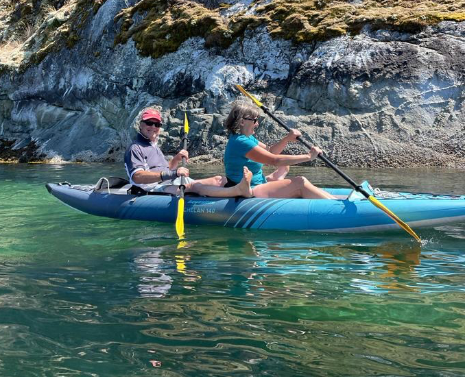 Thurston Bay was a delight after the torrential rain that we experienced in crowded Octopus Island. Like last year, the Octopus Islands are barren of crab and fish! Thurston Bay anchorage was idyllic, with kayak excursions, all day lunches washed down with chilled Sauvignon Blanc. Giggly girls in charge of a kayak didn’t deter the wildlife. We spied a river otter with her pup, loons sounding their haunting cry, busy kingfishers, American Minks and porpoises lazily swimming through the water. Far North witnessed a Black Bear munching on grass roots on the island but our view was obscured by one of the islets.