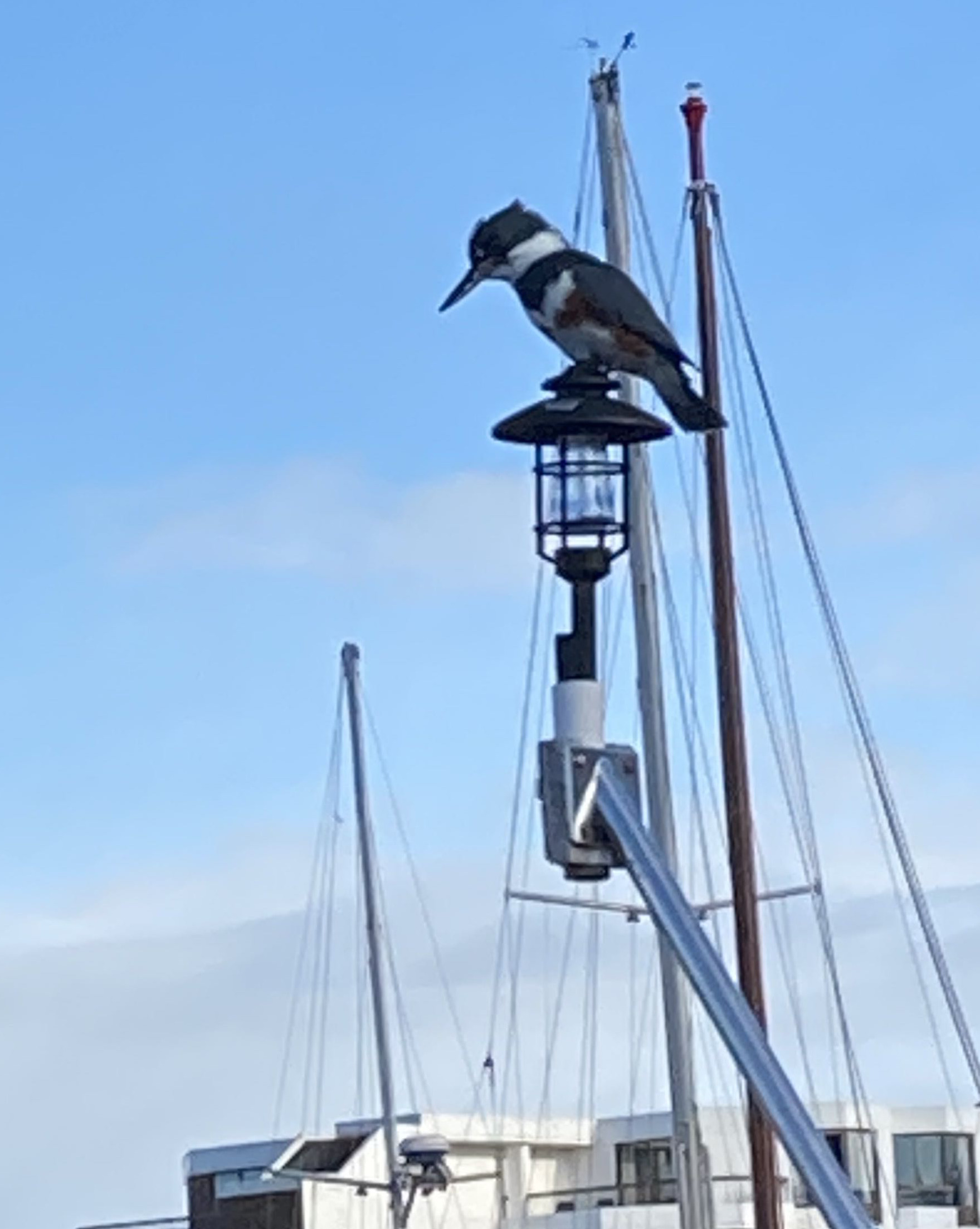Immediately we noticed the huge amount of wildlife on the pontoon, with a busy Belted Kingfisher fishing from the boats. He was a handsome chap (turned out he was a she) with a blue/black Mohican and red waistcoat. 100% success rate on the fishing stakes. The second evening we had the most enormous river otter attacking a crab, leaving only the carapace for the scavenger ravens. Playing hide and seek, a giant harbour seal was fishing nearby and warily lifting it’s huge head to gaze at us before disappearing into the murky depths. He repeated this exercise over and over again. At a later date, whilst walking along Fisherman’s Wharf we saw a seal begging for scraps from the recently returned fishing fleet.