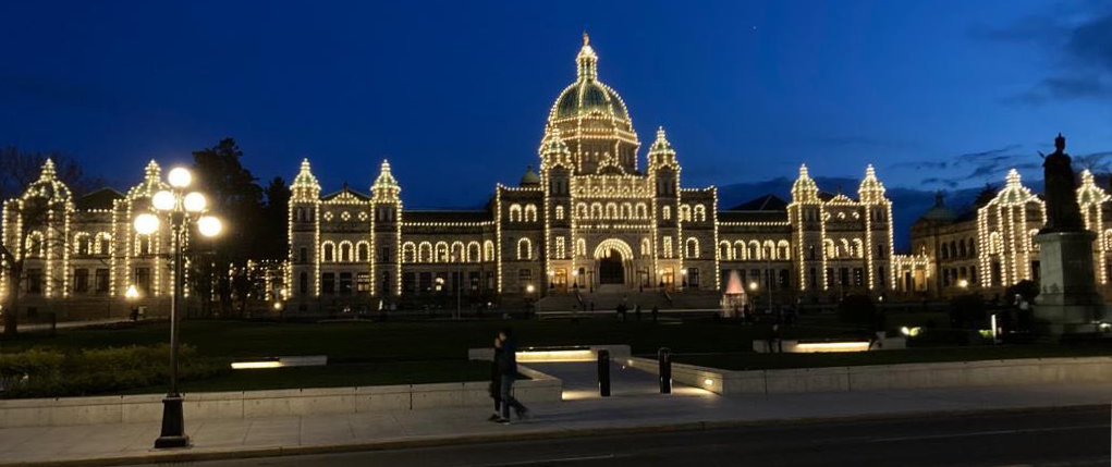 building. A statue of Queen Victoria (of whom the city was named after) dominates the front (back) lawn. At the top of the dome is a statue of Captain George Vancouver, a British Royal Naval officer who explored and charted the Pacific Northwest between 1791- 1794. Allegedly the story goes that the statue was cast in copper, hauled to the top but over time the piece turned green. This was not acceptable. Vancouver was brought down, coated in gold leaf but unfortunately when replacing him to his lofty spot, his right foot was knocked off. Alas the sculptor (Albert Franz Cizek) had destroyed the cast, so a replica of his left foot was taken and he now gazes over the city with two left feet.